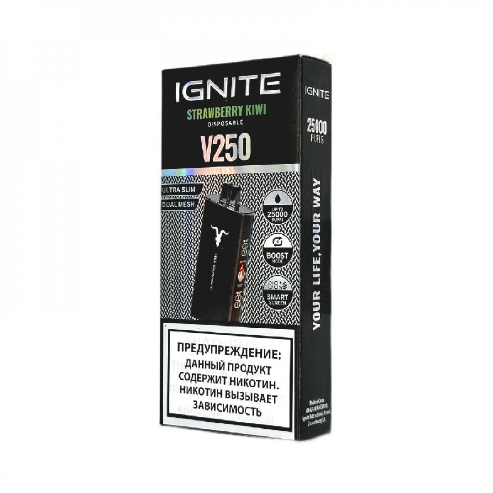 Электронная сигарета Ignite V250 Black 25000 - Strawberry Kiwi (Клубника киви) - купить в Гатчине